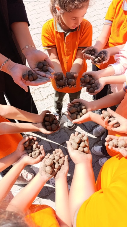 "Yeşil Vatan Benim Okulum Geleceğe Çare" çalışmaları kapsamında okulumuzda önce ısınma olarak "Doğa Sepeti" oyunu oynandı. Doğayı koruma adına farkındalık kazandırıldı. Ardından "Toprak Atölyesi" yapıldı. Atölyede öğrenciler tohum topları yaparak yakın çevrede yeşil olmayan alanlara bıraktılar.